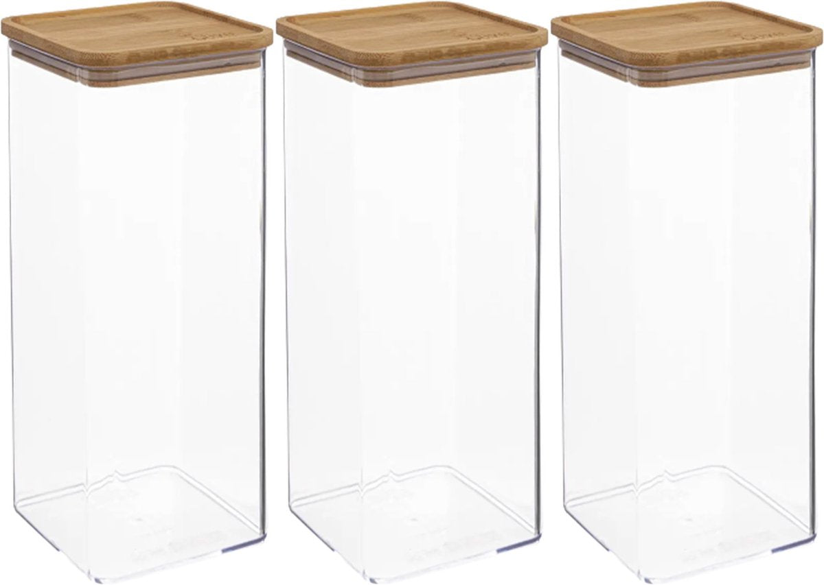 3x stuks voedsel bewaren keuken handige mooie voorraadpot/bus gemaakt van kunststof met bamboe houten deksel. Inhoud: 2000 ml. Geschikt om etenswaren langdurig te bewaren. Luchtdichte afsluitbare deksel. Afmeting: 10 x 27 cm. Verkrijgbaar in vele formaten. Serie: Berlino.