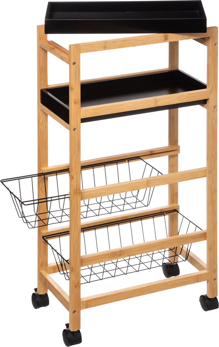 5Five Keukentrolley - lichtbruin/zwart 4-laags - D22 x B40 x H83 cm - bamboe/kunststof/metaal