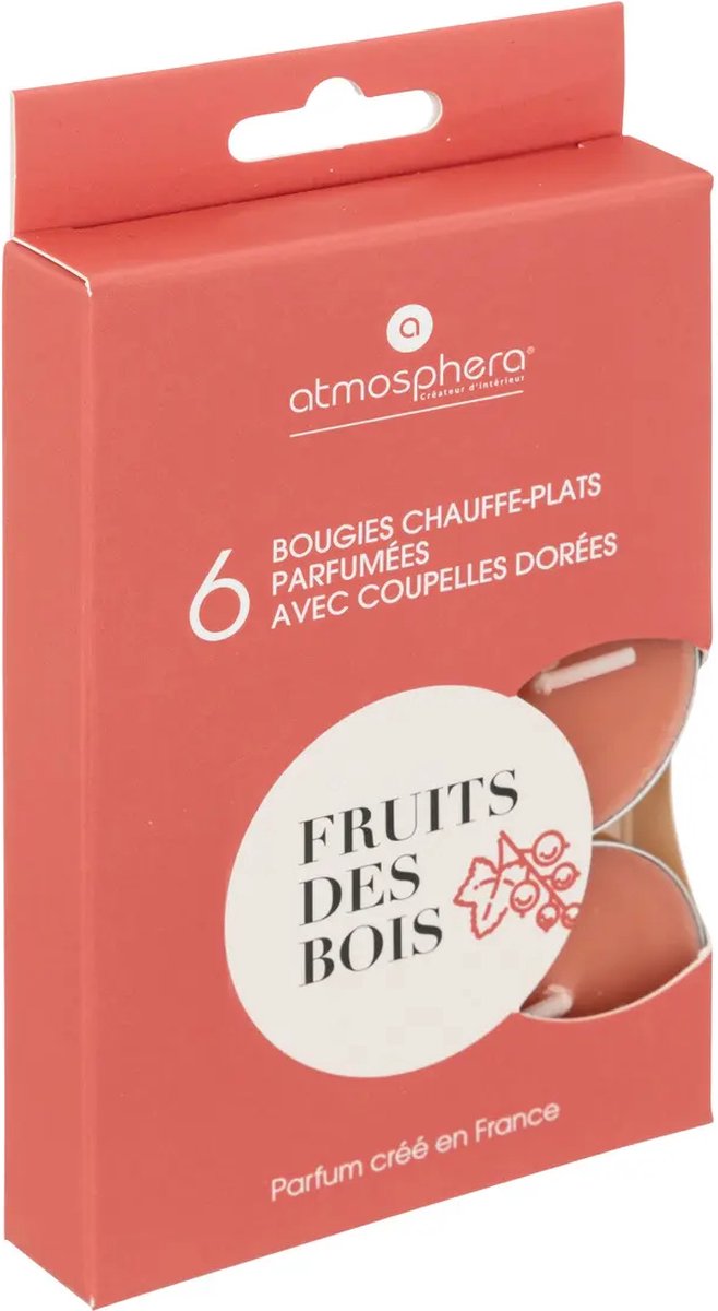 Atmosphera Createur D'Interieur - Geur Theelichtjes - Geurkaarsen - Waxinelichtjes - Geurende Theelichtkaarsen - Scented Tealight Candles - Bosvruchten - Fruits des bois - 1 doosje met 6 waxinelichtjes