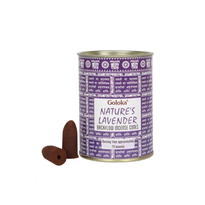 Deze Goloka backflow wierookkegels komen in een handig hersluitbaar blik. Er zitten 24 kegels in elk blik die ongeveer 20 minuten branden. Deze Nature's Lavender wierookkegels kunnen gebruikt worden met een Backflow wierookhouder om een indrukwekkend rook schouwspel te creeren. Goloka maakt al 16 jaar wierook en een deel van hun opbrengst gaat naar het goede doel.