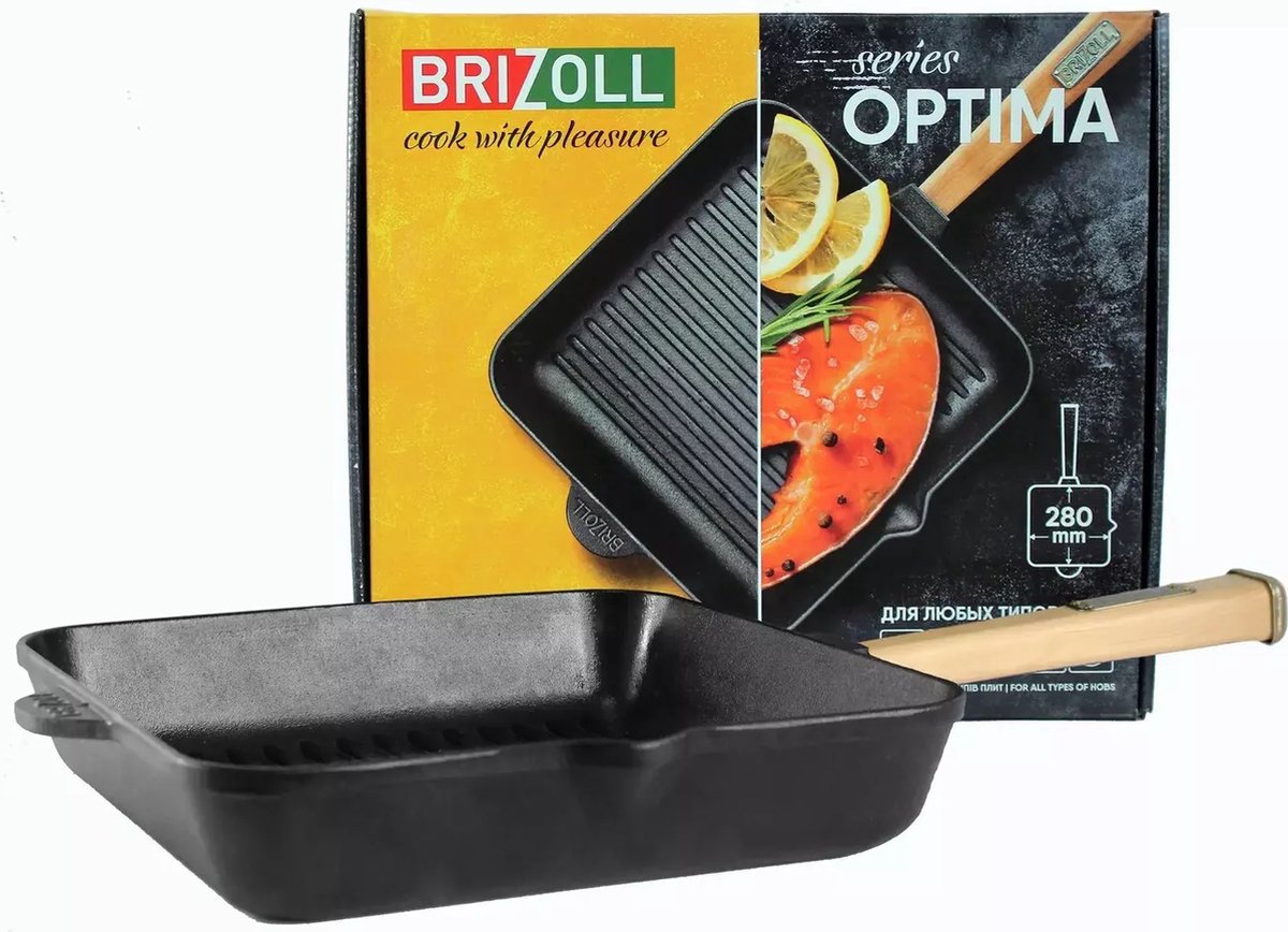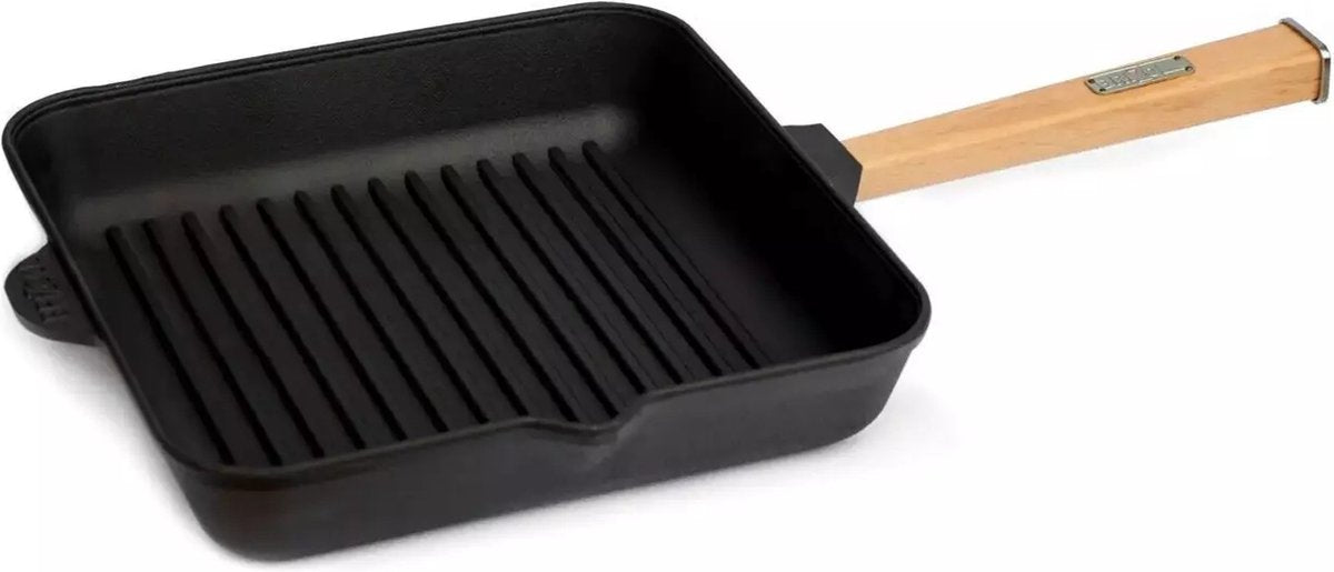Ontdek de veelzijdigheid van de Brizoll Gietijzeren Grillpan met afneembare handgreep. Deze vierkante grillpan van 26x26 cm of 28 x 28 cm biedt optimale warmteverdeling dankzij het hoogwaardige gietijzer. Perfect voor het grillen van vlees, vis en groenten, zowel thuis als op de camping.