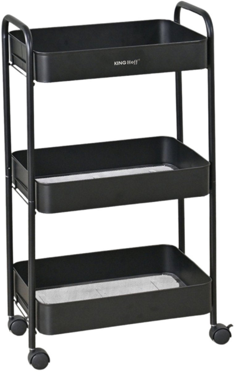 Kinghoff KH-1941 Mobiele 3-delige Stellingkar - Verrijdbare Opbergkar voor Keuken, Badkamer & Kantoor - Zwart - Keukenorganizer - Badkamerorganizer
