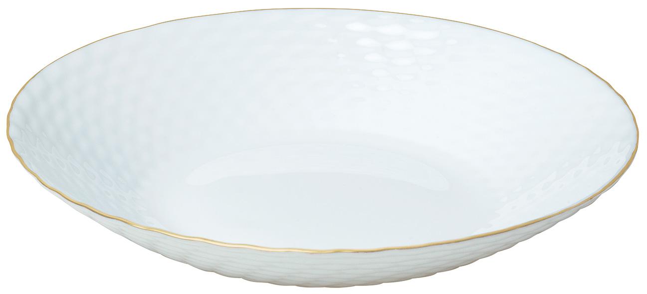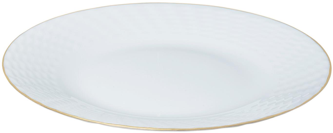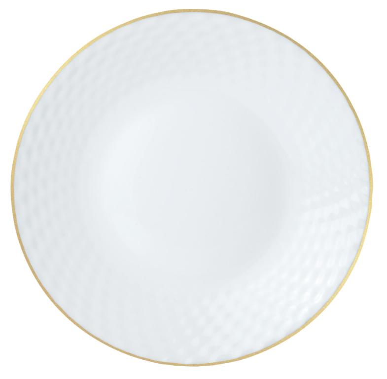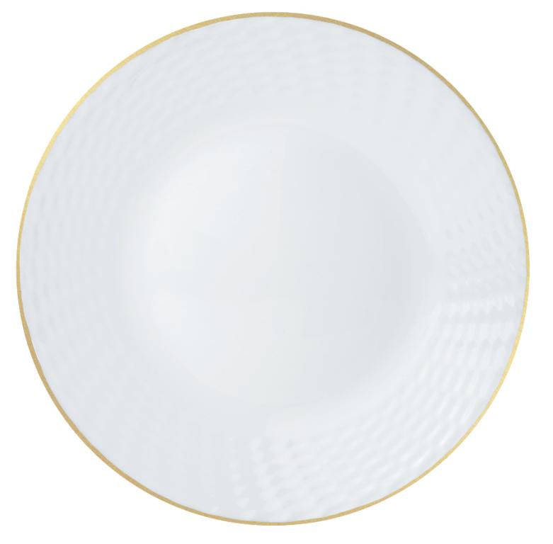 De witte borden met een subtiele gouden afwerking voegen een vleugje luxe toe en zijn perfect voor formele diners en feestelijke gelegenheden.