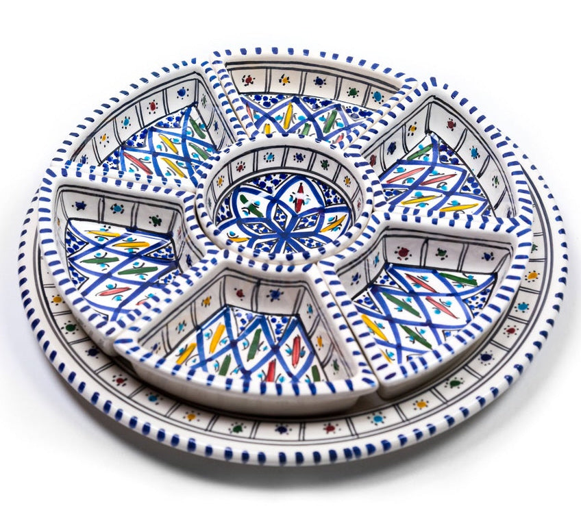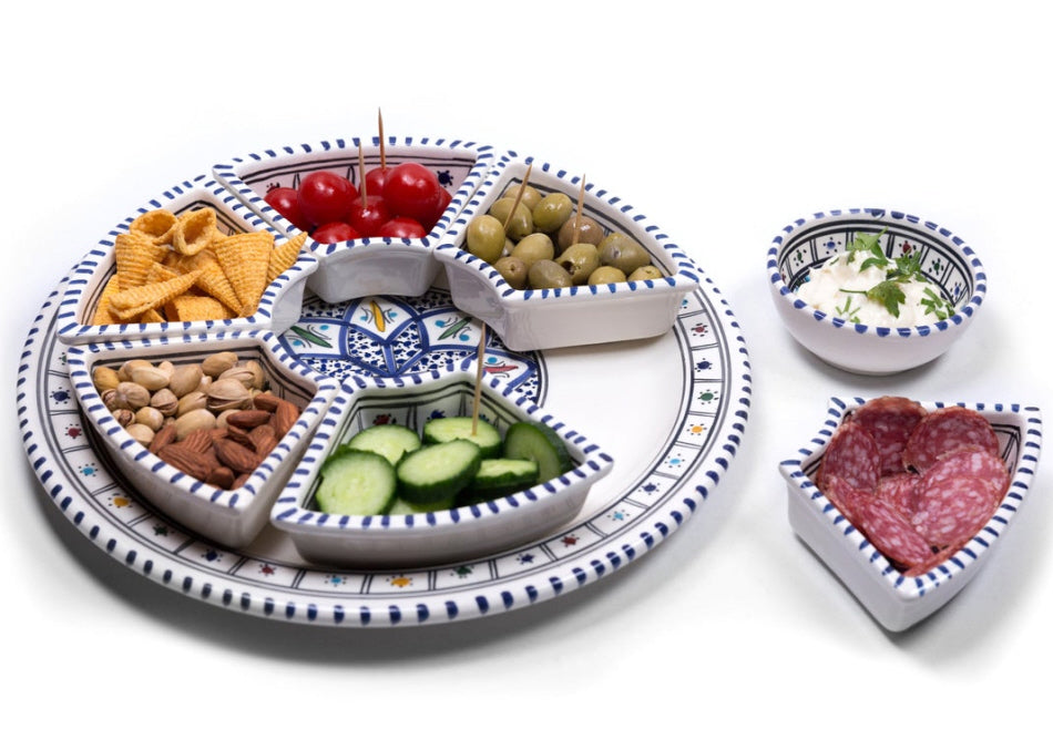 Creëer een verbluffende hapjes presentatie tijdens een gezellige bijeenkomst met deze Marokkaanse handgemaakte serveer set.