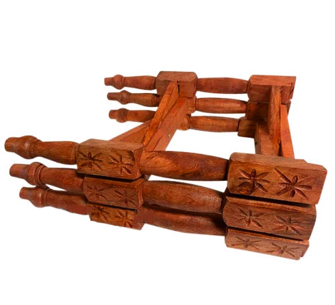Opklapbare tafel onderstel van gesneden hout met dienblad