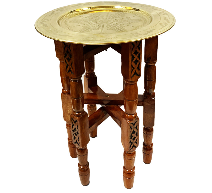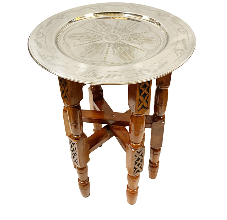 Prachtige Marokkaanse handgemaakt bijzettafel bestaand uit opklapbare houten standaard en een messing blad. Het messing blad kan worden verwijderd en... Lees meer