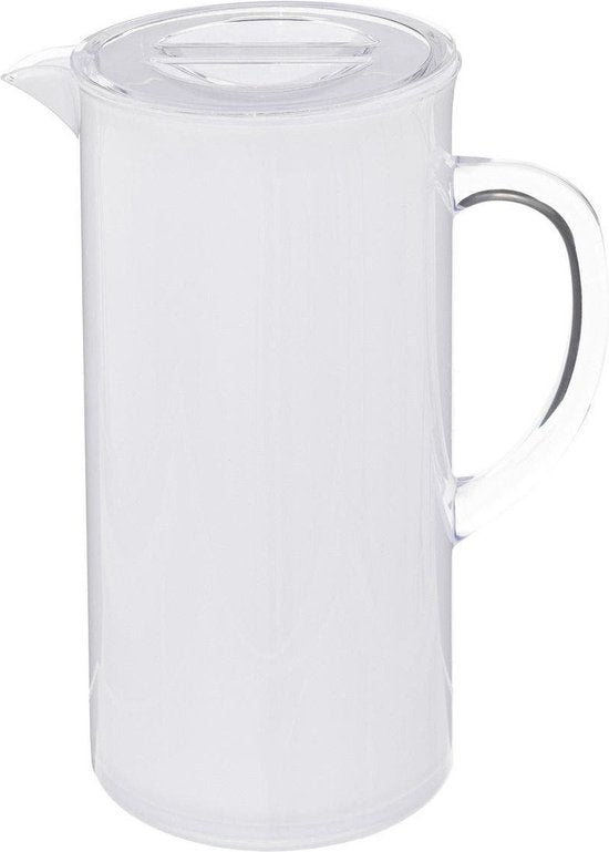 Sapkan/schenkkan karaf met deksel 1950 ml transparant wit. Formaat: 18 x 10,5 x 25 cm. Materiaal: kunststof. Limonadekannen/waterkannen voor op... Lees meer