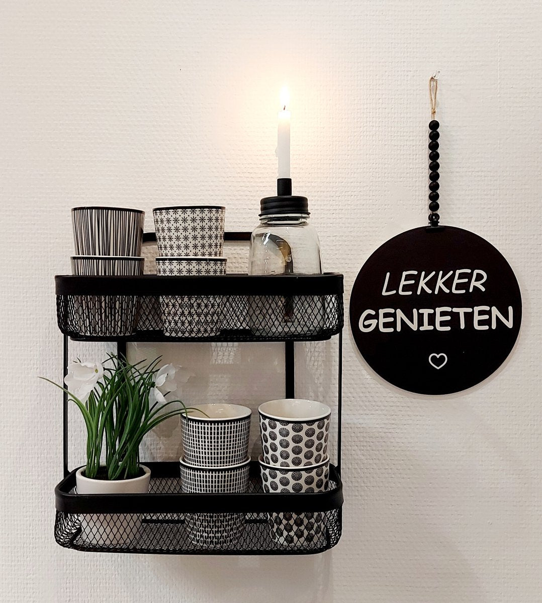 Dit stylingrekje is te gek! Deze metalen etagère is het ideale styling object! Je kunt er van alles in bewaren en hem gebruiken om prachtige settings in te stylen. In de badkamer bijvoorbeeld. Ook in de keuken is hij handig en decoratief voor mokken, (kruiden-) plantjes, olie & azijn, een kookboek etc. Je kunt dit rek ophangen of neerzetten. De afmetingen zijn: 35 cm hoog x 31 cm breed x 11 cm diep.
