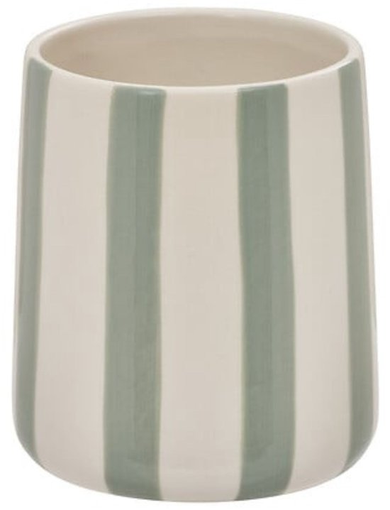 Tandenborstelhouder Strio Hoog - 10 cm - Keramiek Celadongroen - Tandenborstelbeker - Badkamerbeker - Wasbakbeker - Bakje voor de badkamer - Groene Strepen - Keramisch
